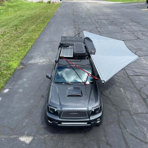 - Awning made of 420d ripstop polyester oxford fabric, polyurethane coated for 2500mm waterproofing