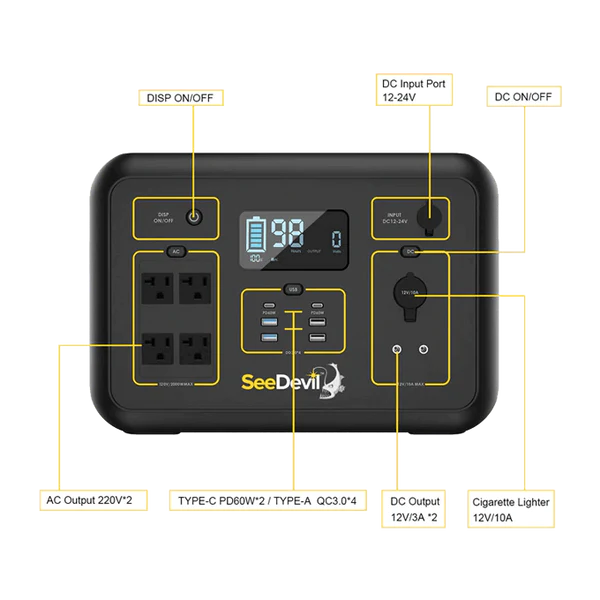 With the SeeDevil™ 2000W Power Station plugin and power up for any activity or emergency.