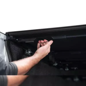 Pull the string latch and fold the cover toward your truck cab to open it and access your gear. When you fold the cover back to shut it, the panels automatically latch into place.
