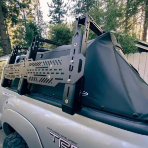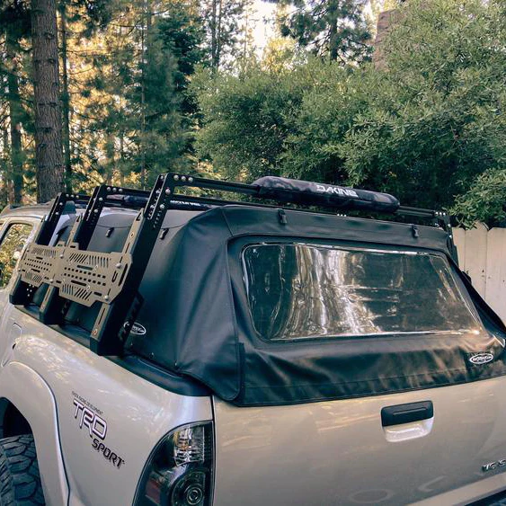 Fully built out of aluminum our bed rack is strong, lightweight, and fits perfectly on your Tacoma over your soft topper! This rack is durable enough to mount a rooftop tent without sacrificing removing your soft topper. It is offered with adjustable height legs and with a one size fits all design we cover both short and long bed owners!