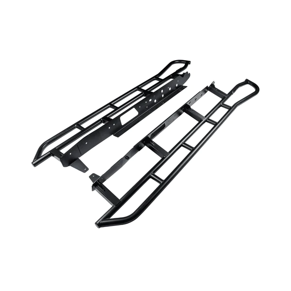 - All-Pro Rock Sliders are made from heavy duty 1.75” x .120” Steel Tube. Our sliders feature an innovative, one-piece mounting plate that runs down the frame, adding support to the weaker C-channel portion of the Tacoma’s frame while allowing for an easier bolt-on installation. Rock Sliders mount with the included grade 8 hardware including countersunk bolts that are flush with the bottom surface, since exposed bolt heads can be easily mangled by rocks. Pinch flange notching may be required due to slight variations between vehicles, and minimal drilling is needed for proper installation.
