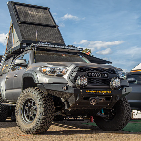 Looking for a replacement bumper that will provide extra protection without adding bulk? Look no further than the 2016-2022 Toyota Tacoma T3 Baja Front Bumper from CBI Offroad. The smaller sibling to the 2016-2022 Toyota Tacoma T3 Baja Front Bumper with Mid-Height Bull Bar, this version provides the protection you want on the trails while still allowing you to showcase your full grille and headlights with no restrictions.