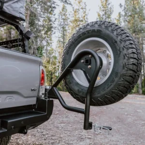 - Dual swing-out arms with fully-sealed greaseable tapered roller bearing hinge Spare tire arm DOM tubing is .188 wall to reduce vibration and accommodates up to 37″ tire