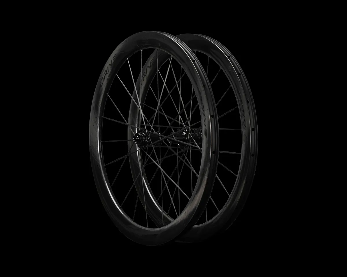 In the Drive II wheels, we are using 4.5mm aero bladed carbon spokes. As opposed bonded carbon spokes, ours are as easily replaceable as their steel counterparts. Each spoke weighs roughly 3 grams each. In our laboratory testing, they have proven to be 8% more laterally stiff than steel spoke, leading to more efficient power transfer when riding, saving you watts.
