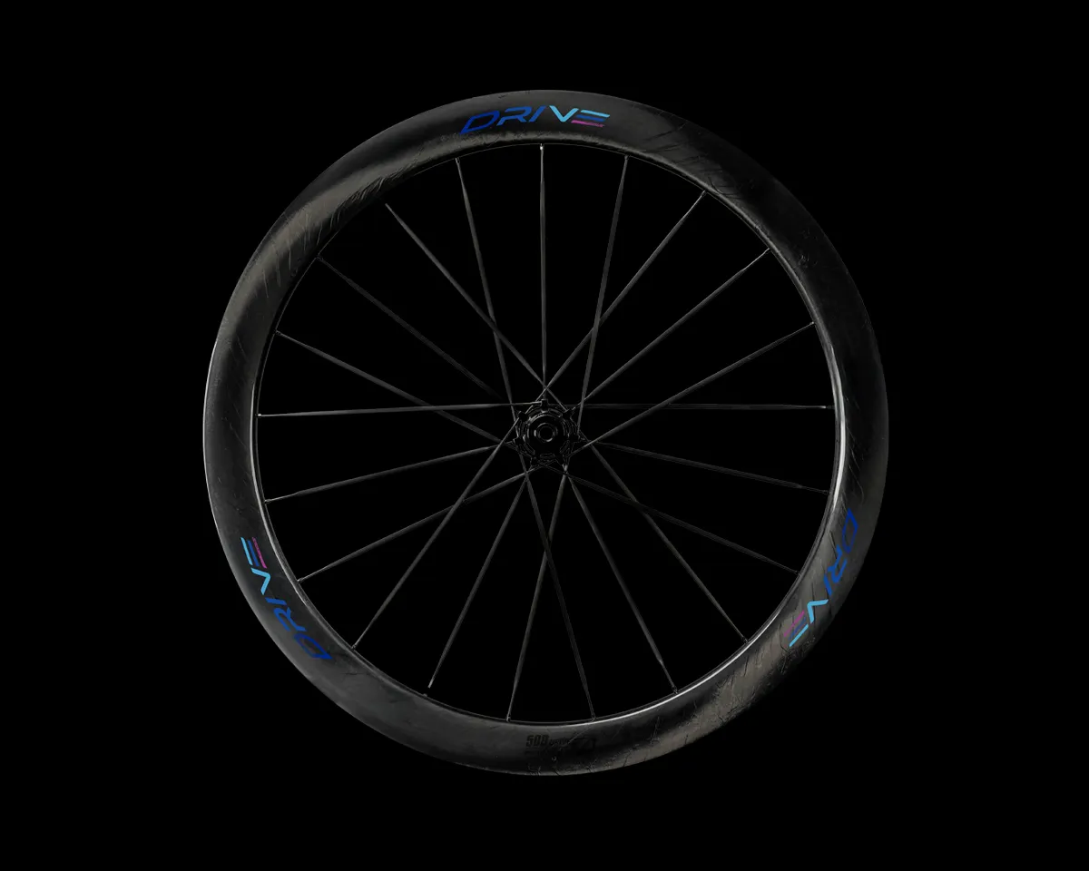 In the Drive 50D II Anniversary Edition wheels, we are using 4.5mm aero bladed carbon spokes. As opposed bonded carbon spokes, ours are as easily replaceable as their steel counterparts. Each spoke weighs roughly 3 grams each. In our laboratory testing, they have proven to be 8% more laterally stiff than steel spoke, leading to more efficient power transfer when riding, saving you watts.