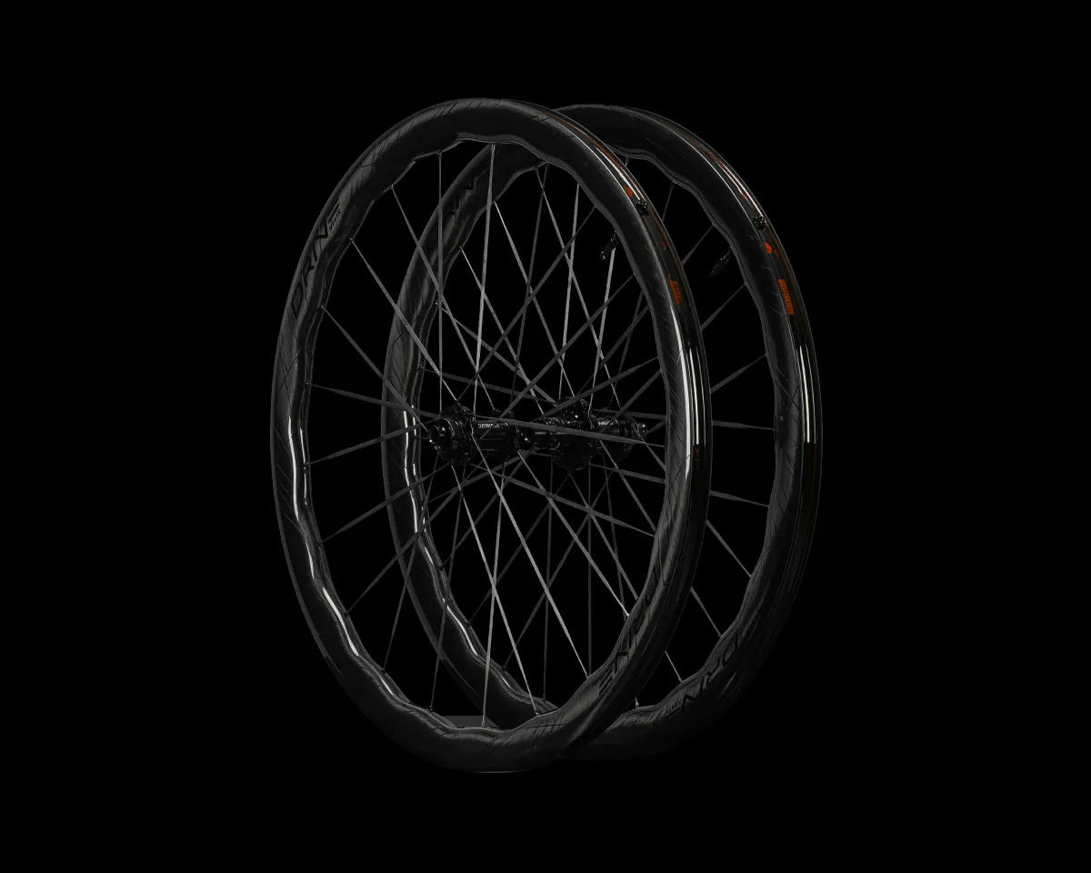 Drawing inspiration from our popular Drive road wheels, the 46D CS uses replaceable carbon spokes, UNI carbon fiber, and S&S ceramic bearings. What sets these new wheels apart isn’t just the Star Ratchet Hub and improved carbon spoke design, but also our innovative undulating rim design, whose unique profile results in helical-shaped laminar flow when out riding.