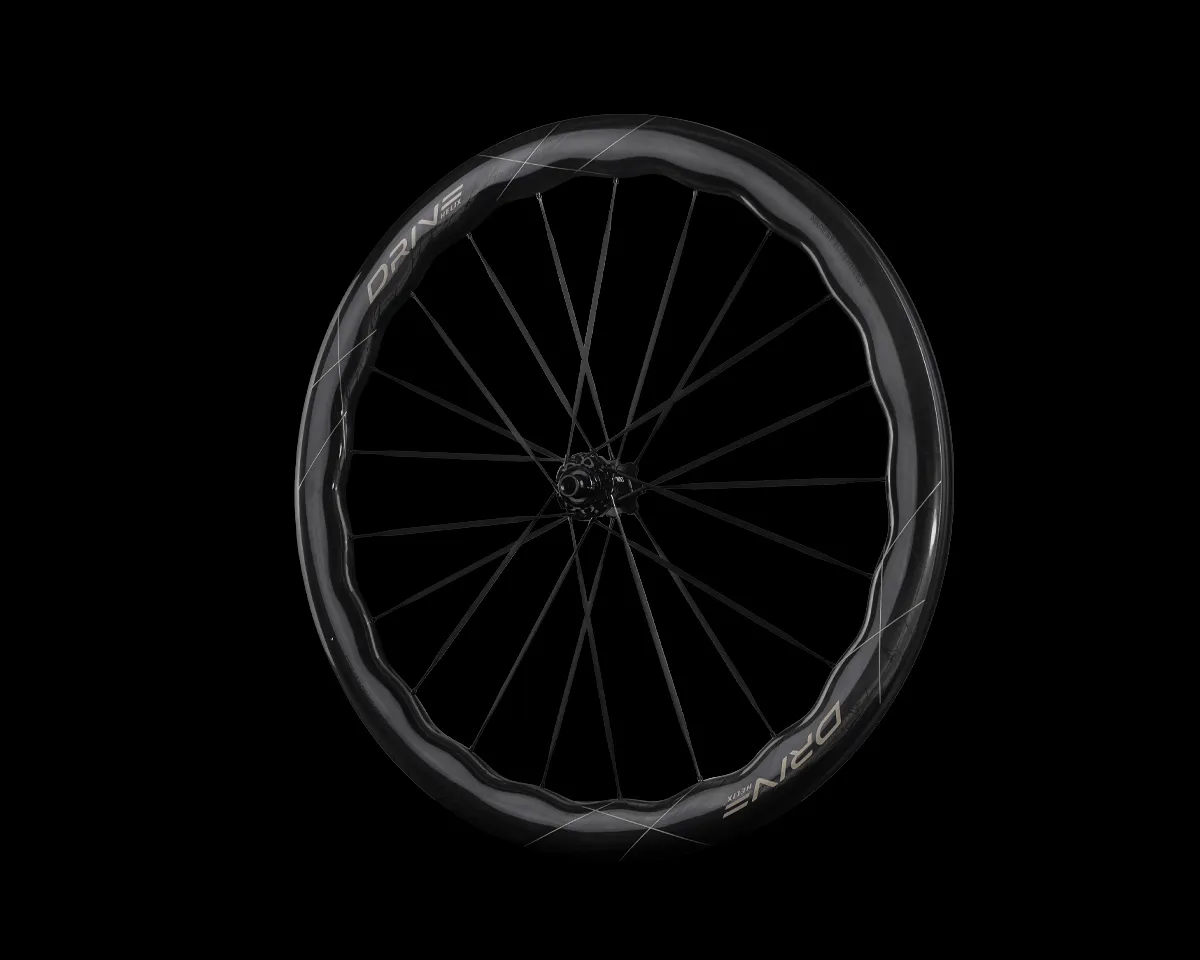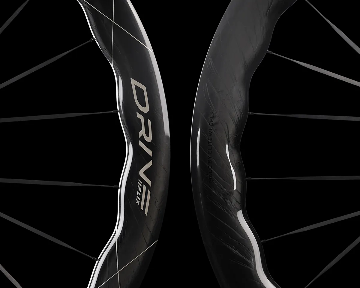 In designing the Drive Helix 57D CS wheelset, the goal was to create something that ticked all of the boxes. It had to not only be aero, light, laterally stiff, strong, but also crosswind resistant. To accomplish this, we used our in-house UNI carbon fiber, which is a mixture of our custom resin and genuine Japanese Toray T800 and T1000 carbon fiber. It allows our wheels to be stiff, light, and strong enough to go far beyond the UCI’s vertical impact test. Our patented undulating rim design draws inspiration from the tubercle effect found widely in nature, allowing for a significant improvement in stability in windy conditions.