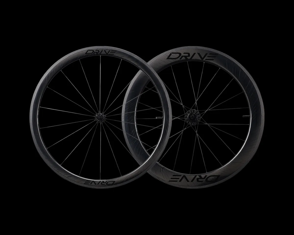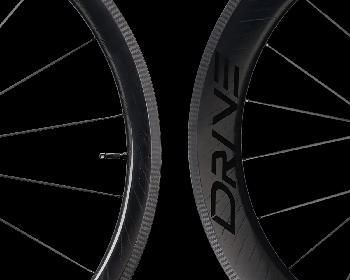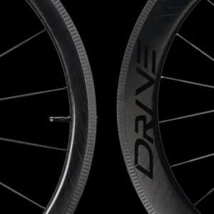 What separates Drive wheels from most others is its use of high-modulus carbon spokes. The 3.2mm wide aero bladed spokes offer a 7% increase lateral response as compared to equivalent steel spokes. The spokes are mechanically secured, giving the benefit of being able to be trued and maintained just like regular spokes. Anti-loosening technology is also incorporated into the spoke nipples. The threads built into the nipples give it a double-locking effect.