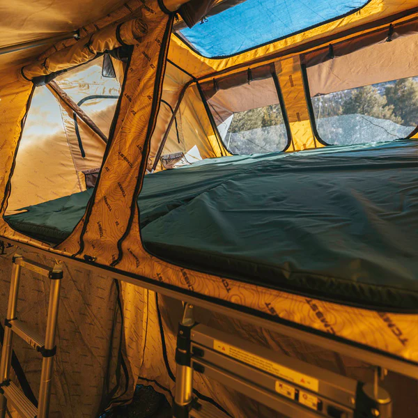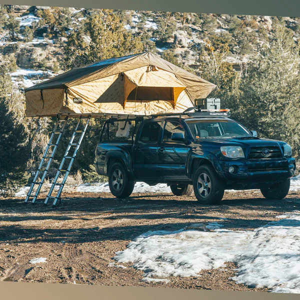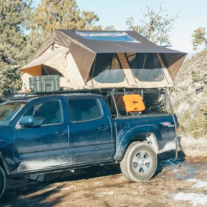 Bring the whole family with the Mt. Denali tent, which is designed to sleep ‘four-plus.’ This behemoth features the option to divide the tent into two halves, each with its own door and ladder. This way you can essentially have two tents in one, or keep the whole tent open and snuggle up. Bed Rack Needs to be Roof Rack Height to fit this Roof Top Tent on a Tacoma.