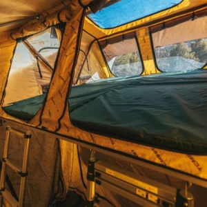 The Mt. Shasta tent is designed for ‘two plus,’ meaning it can comfortably sleep two adults plus a dog or smaller child, especially if you opt for the extended version. It can still easily fit on all trucks, trailers, and SUVs, as well as most cars. An annex adds extra space beneath the tent for changing, cooking, storing gear, or sleeping.