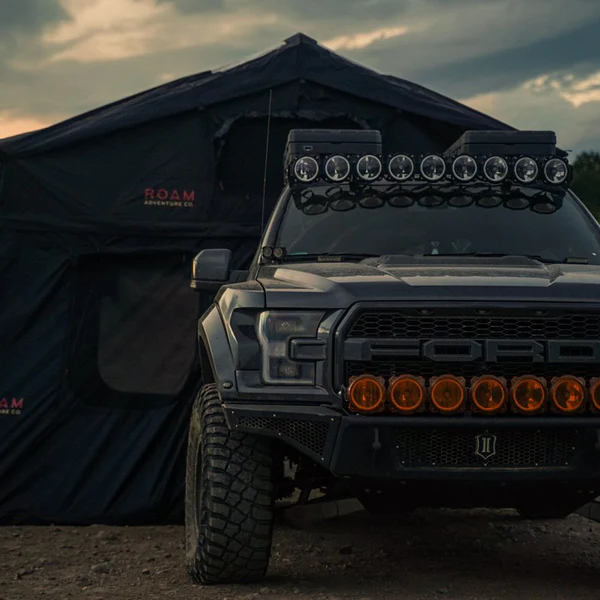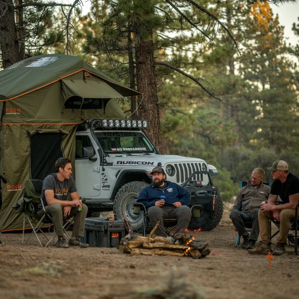 The ROAM Vagabond is a durable foldout rooftop tent that sleeps 3-4 people on top of a high-density foam mattress.