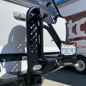 Dirtcom’s TRAIL SWING Adventure Series fits a variety of compact and midsized rigs. If you’ve upgraded to bigger tires and can’t find a place to put your full-size spare, then your search ends here! This is a great alternative to a heavy and expensive full metal rear bumper replacement. At 65 lbs. this high clearance tire carrier was designed to offer you the best in functionality without compromising aesthetics. Check out the features below!